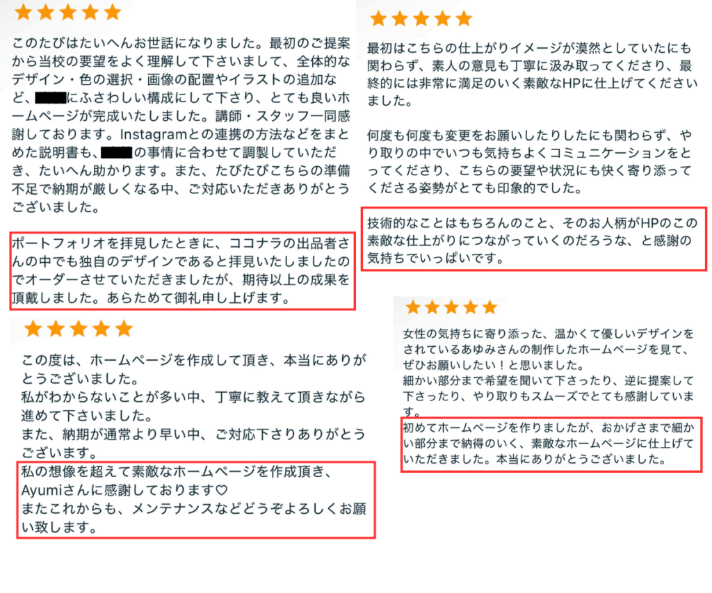 これまでココナラでは50件以上の制作実績があり、全件★5評価をいただいております。